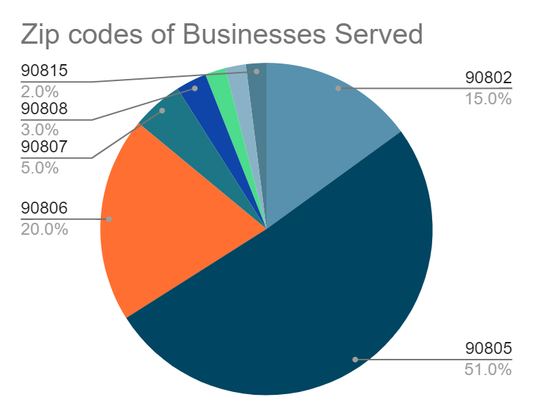 This grant focused on supporting mainly North Long Beach businesses with technical and marketing support to help increase business profile and awareness. Although our primary goals were North Long Beach Businesses, businesses from other zip codes were also served and provided with services.  (promote black business)